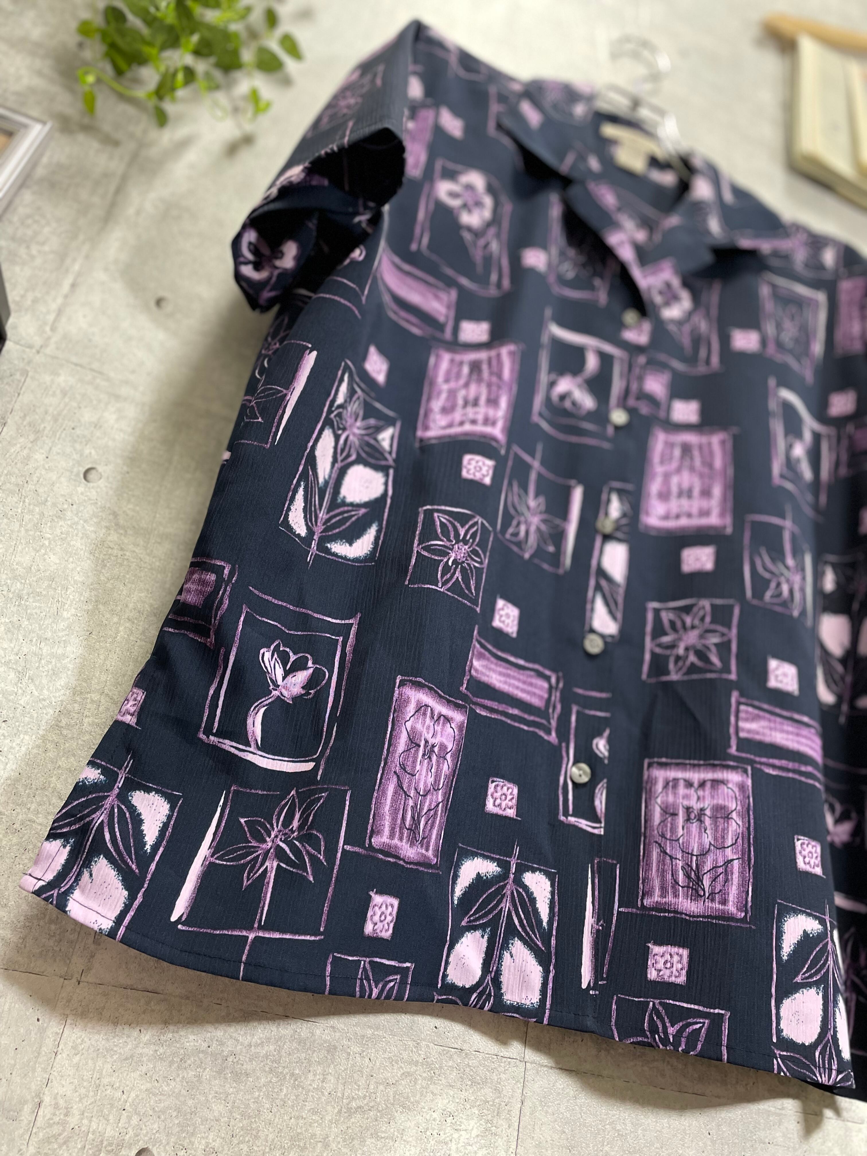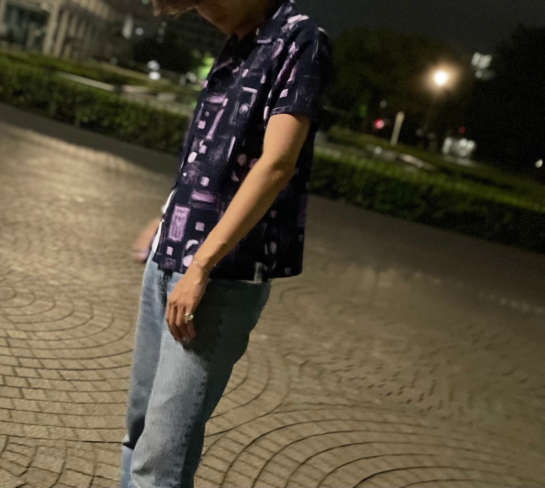 柄シャツなんだけど、黒ベースにまとまった雰囲気なので、どこかシックなテイストも持ち合わせております。