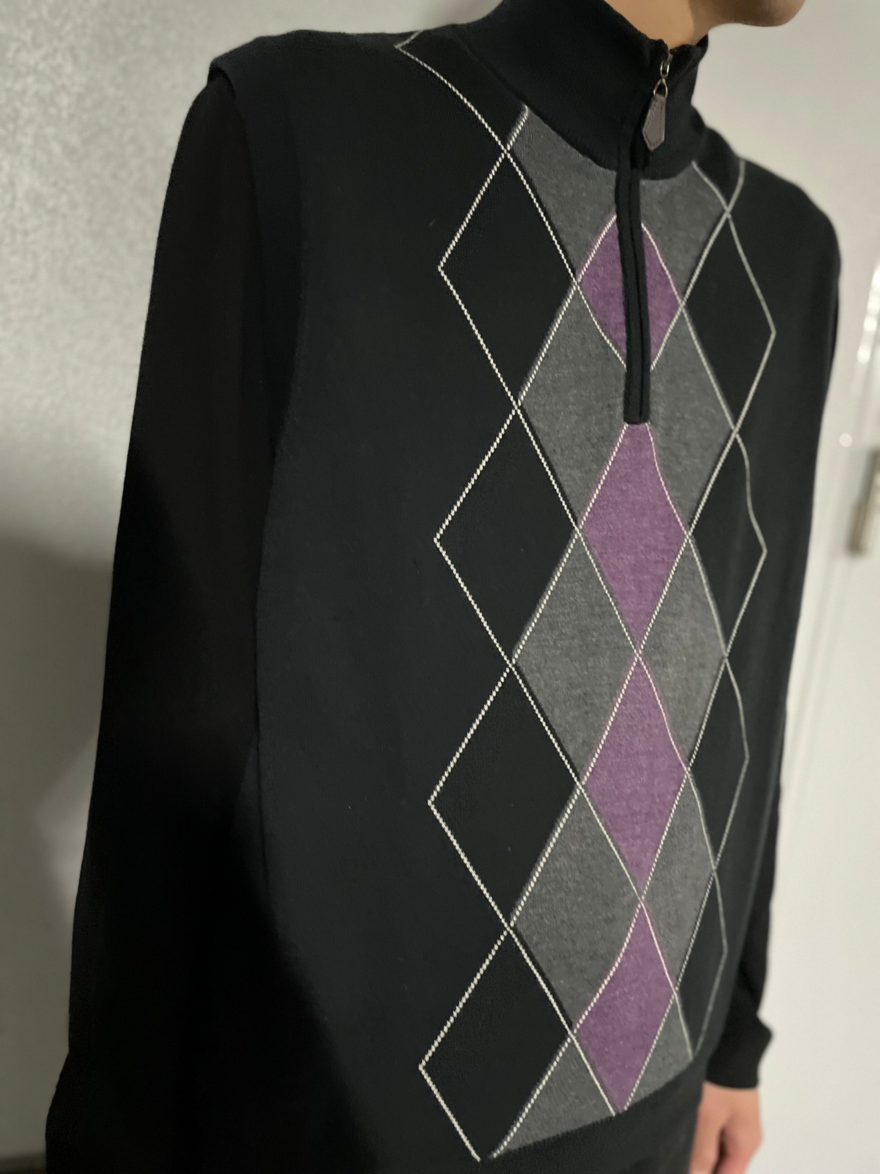 ルックのように、黒のハイネックインナーと合わせて着るのもシックでかっこいいです。