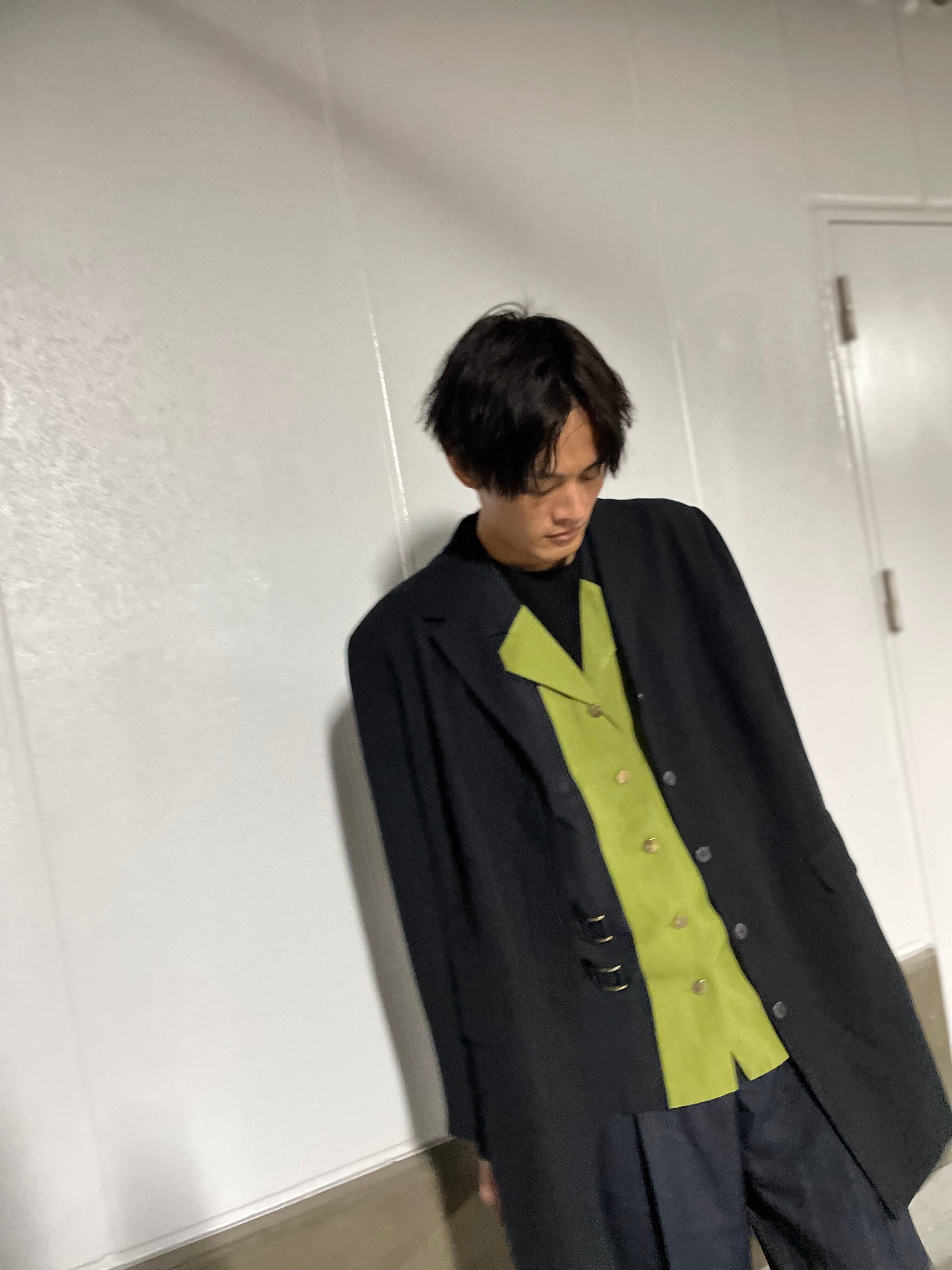 単体でも十分キマりますが、ルックのように黒のアウターなどと合わせてインナーとして着用するのもカッコいいと思います。