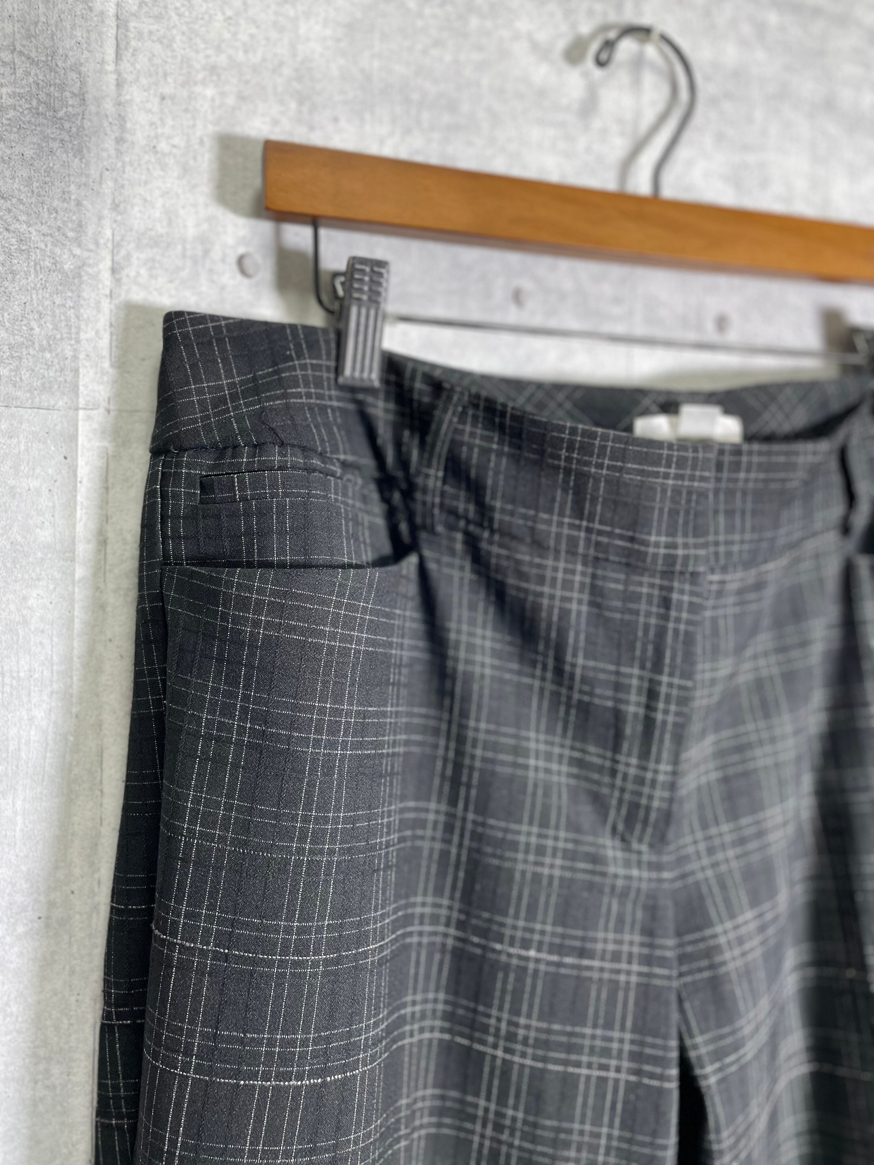 ワイドなサイズ感のチェックパンツ。
