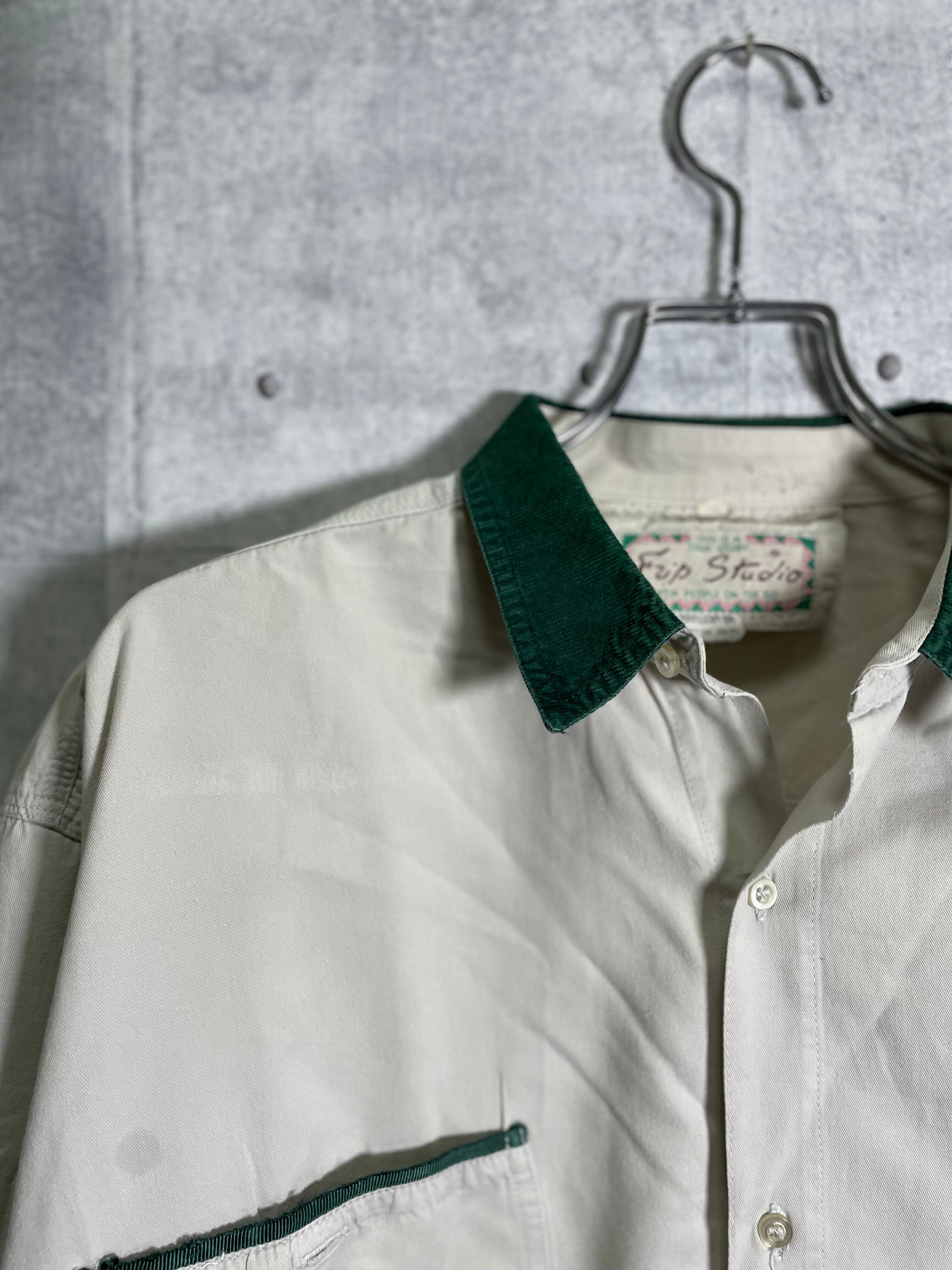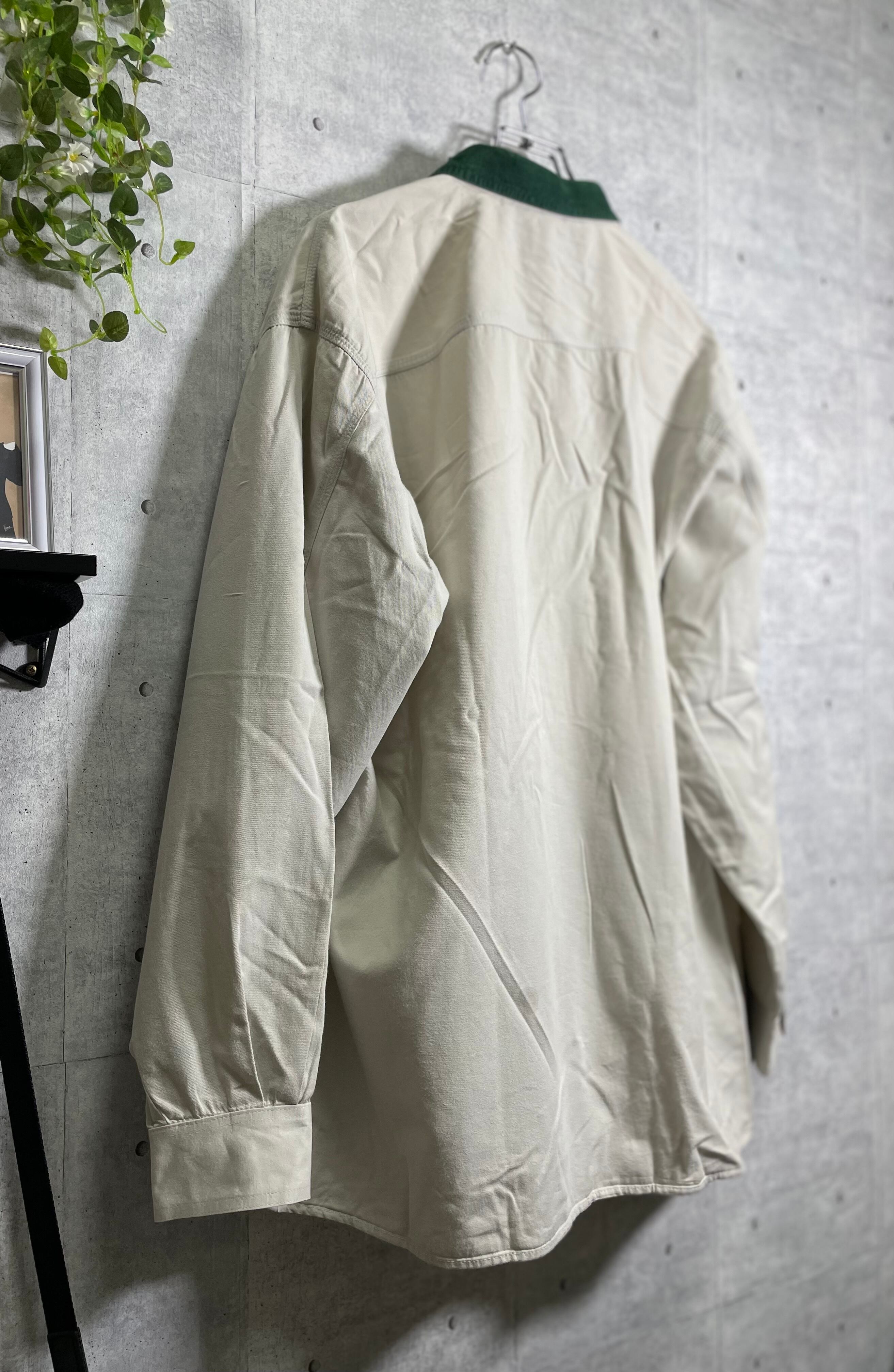 襟部分と胸ポケットのステッチ部分のグリーンが可愛いですよね。