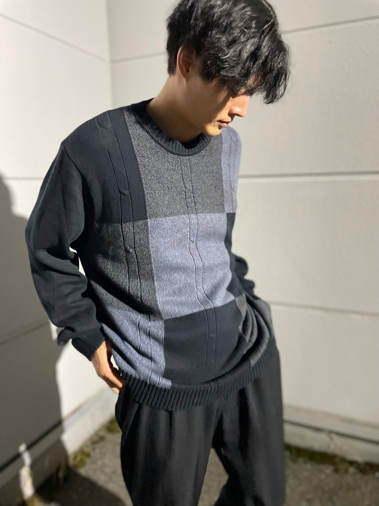 オーバーサイズ気味の肉厚ニット。