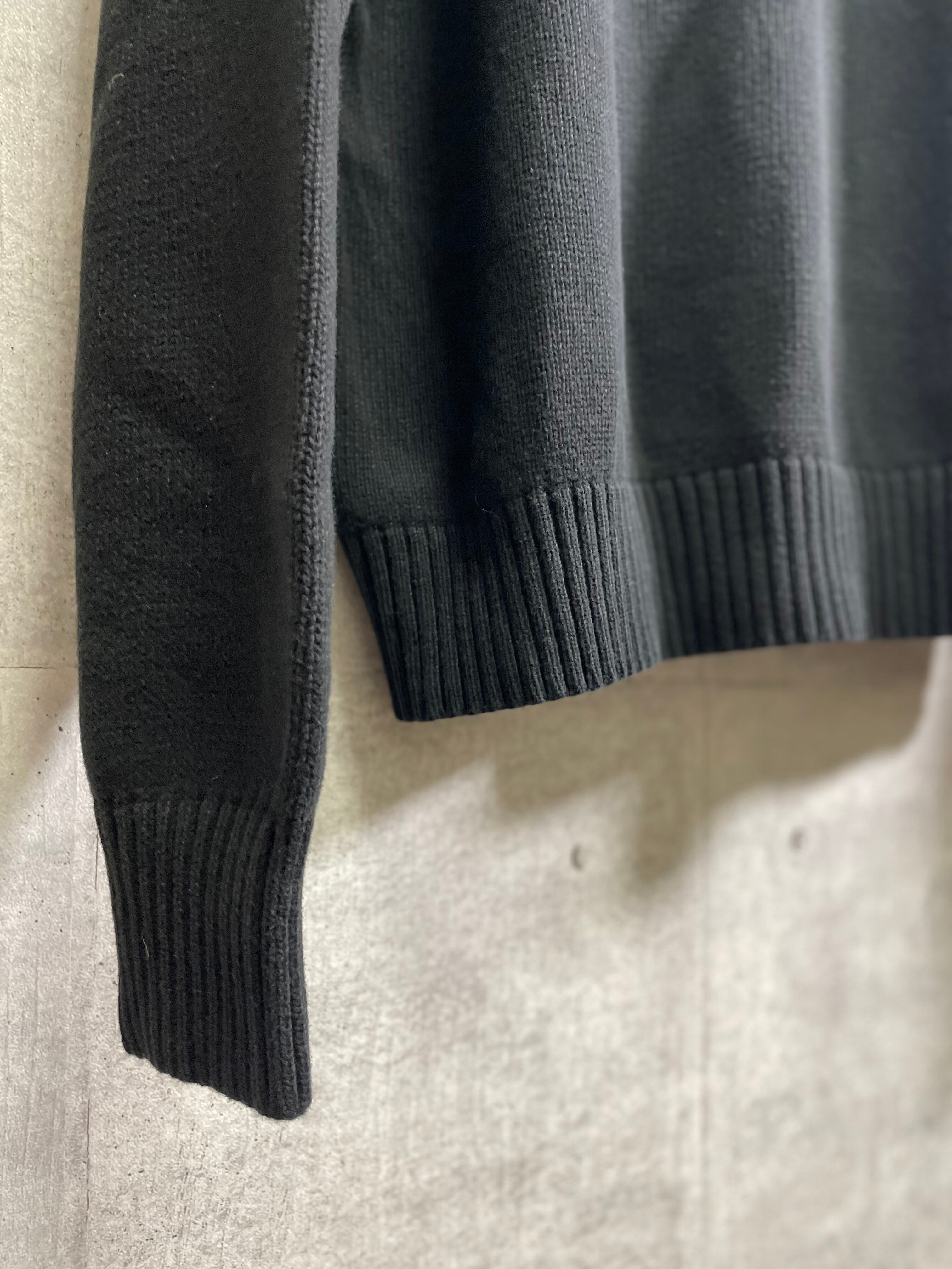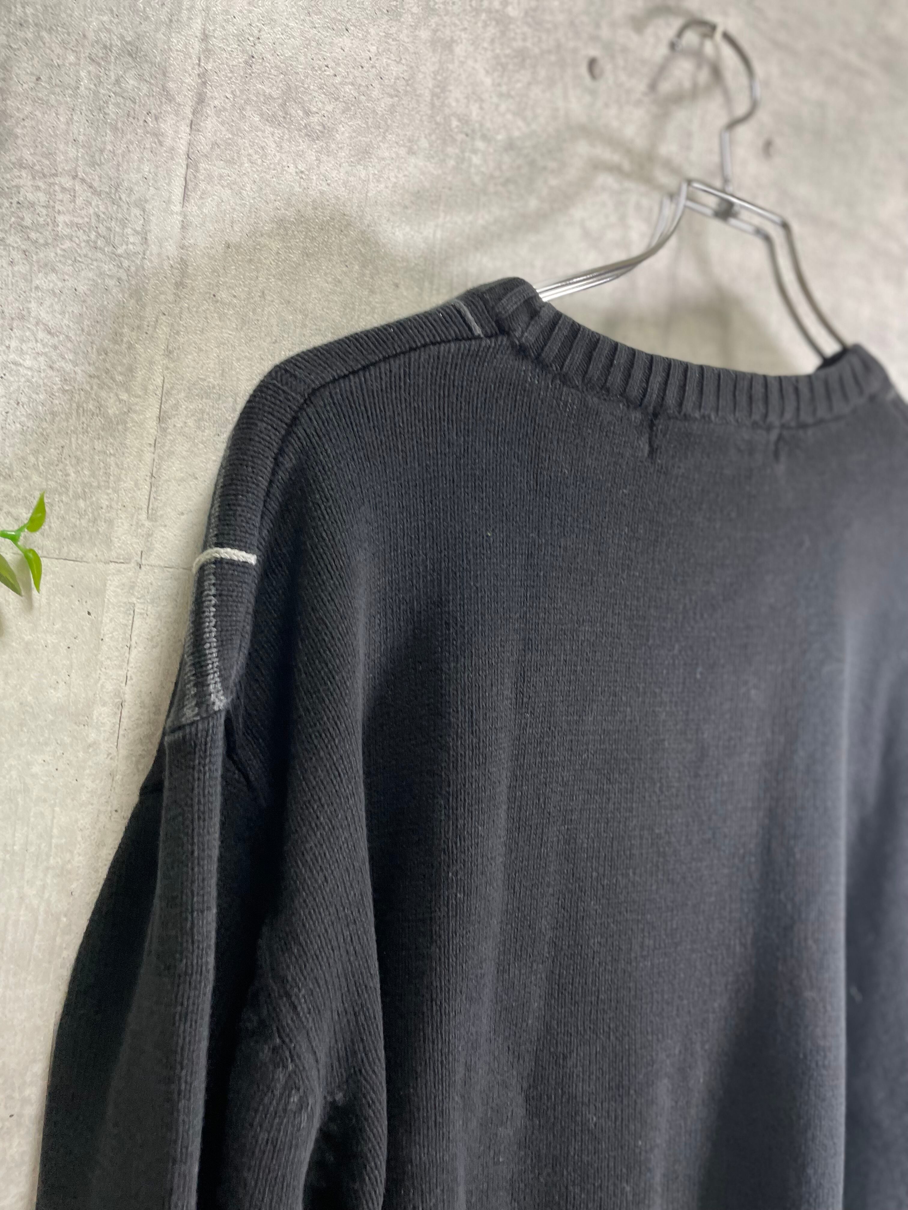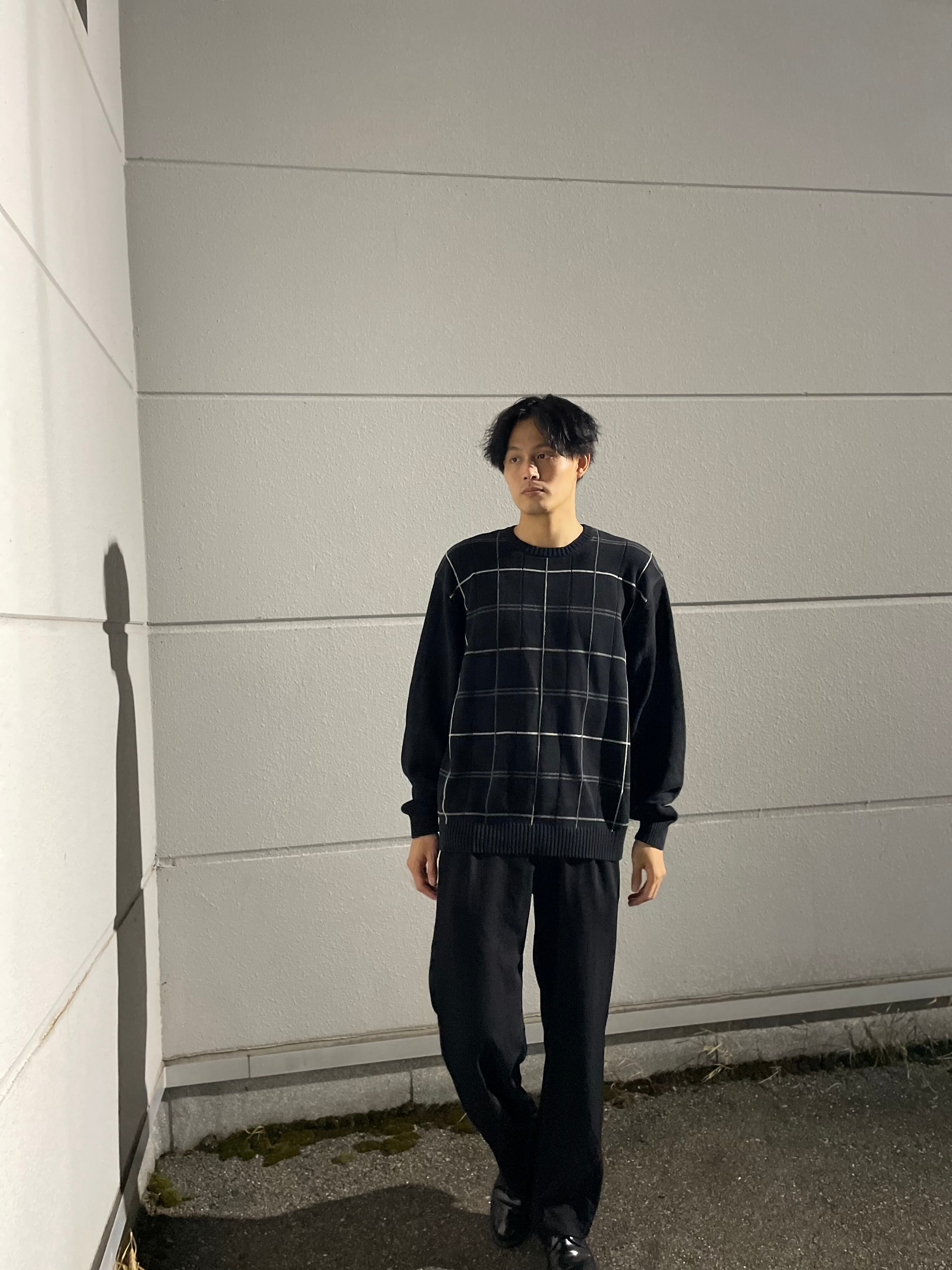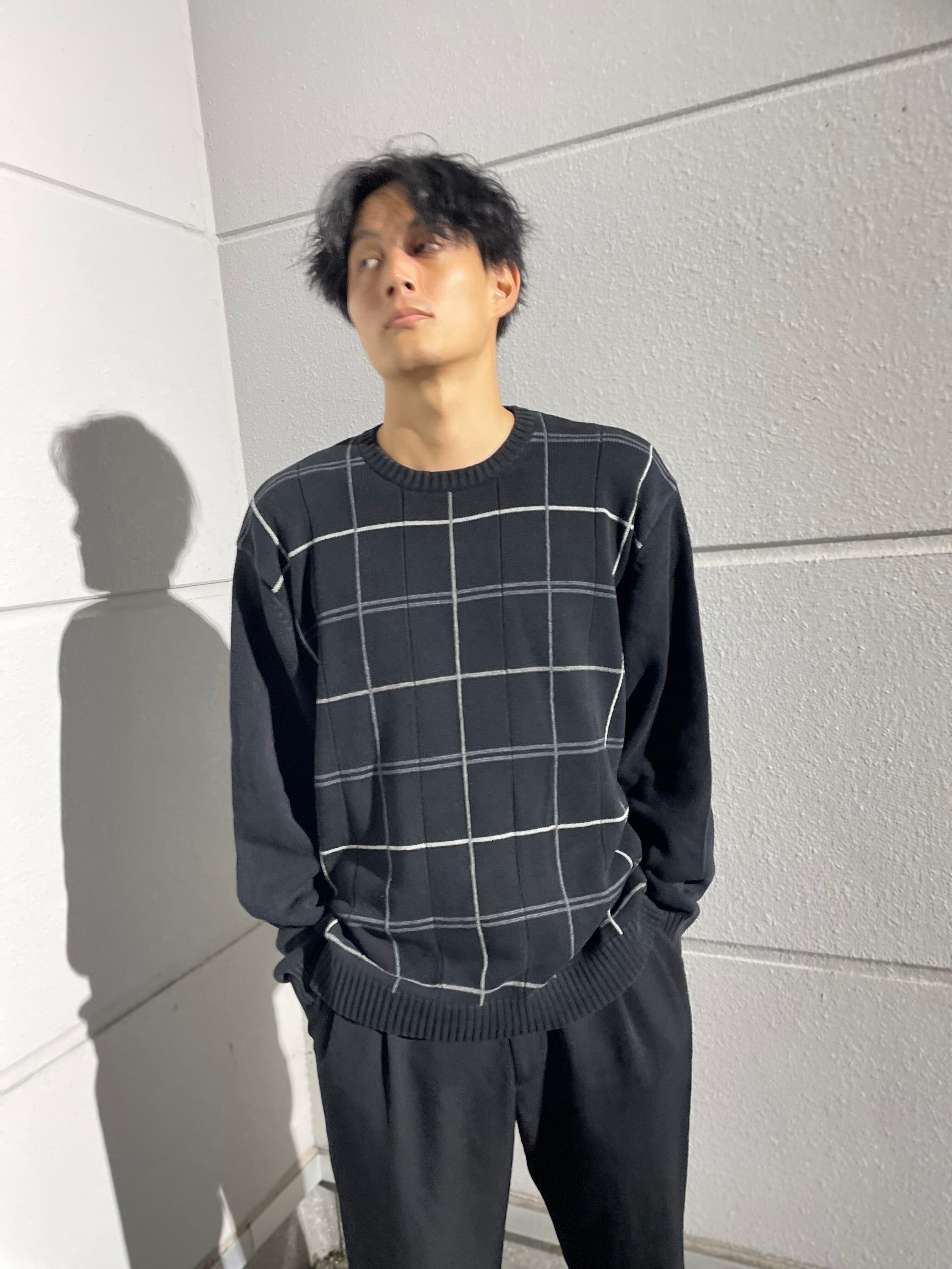 控えめなチェック柄が落ち着いた印象を与える、オーバーサイズ気味の肉厚ニット。