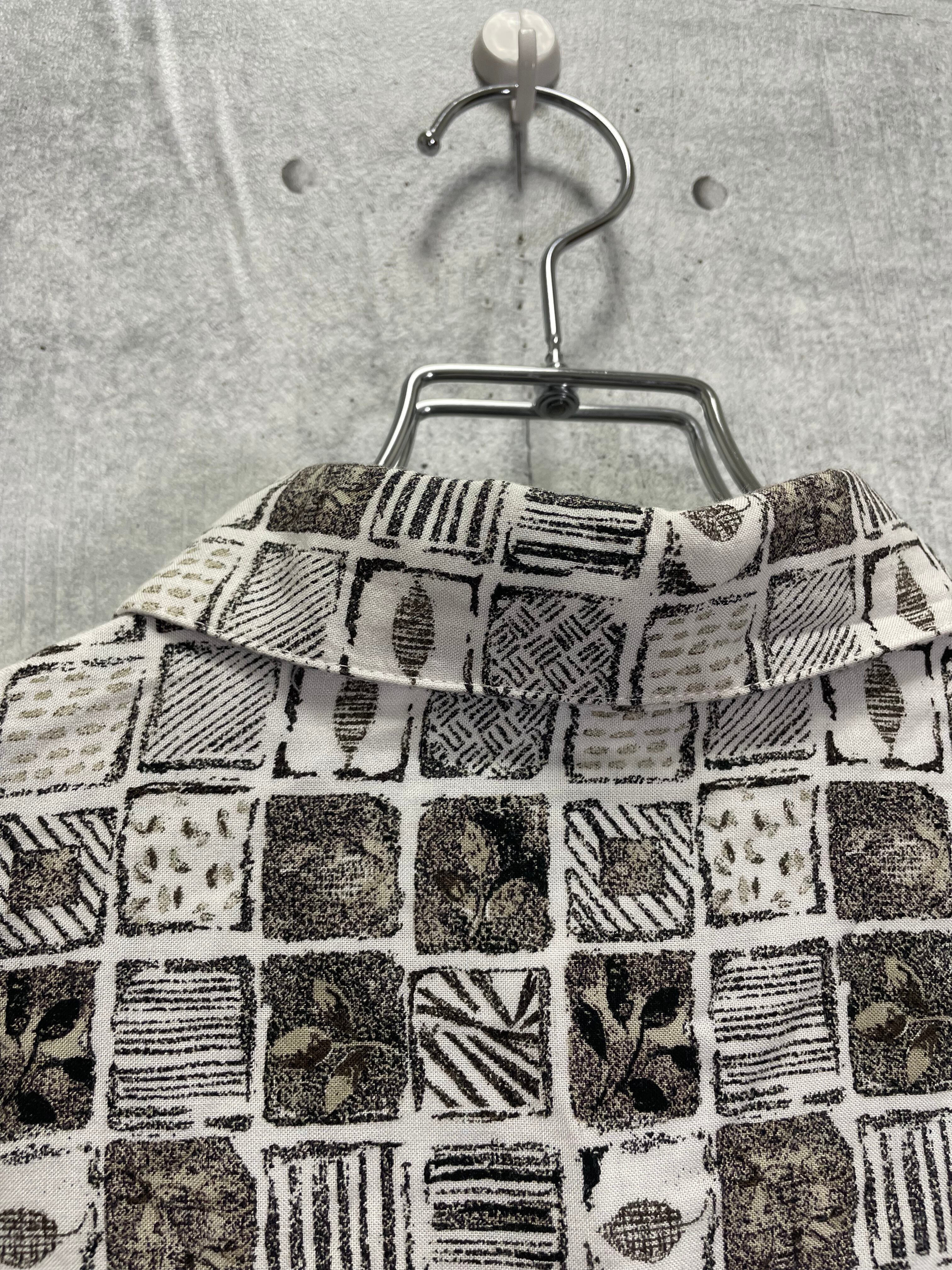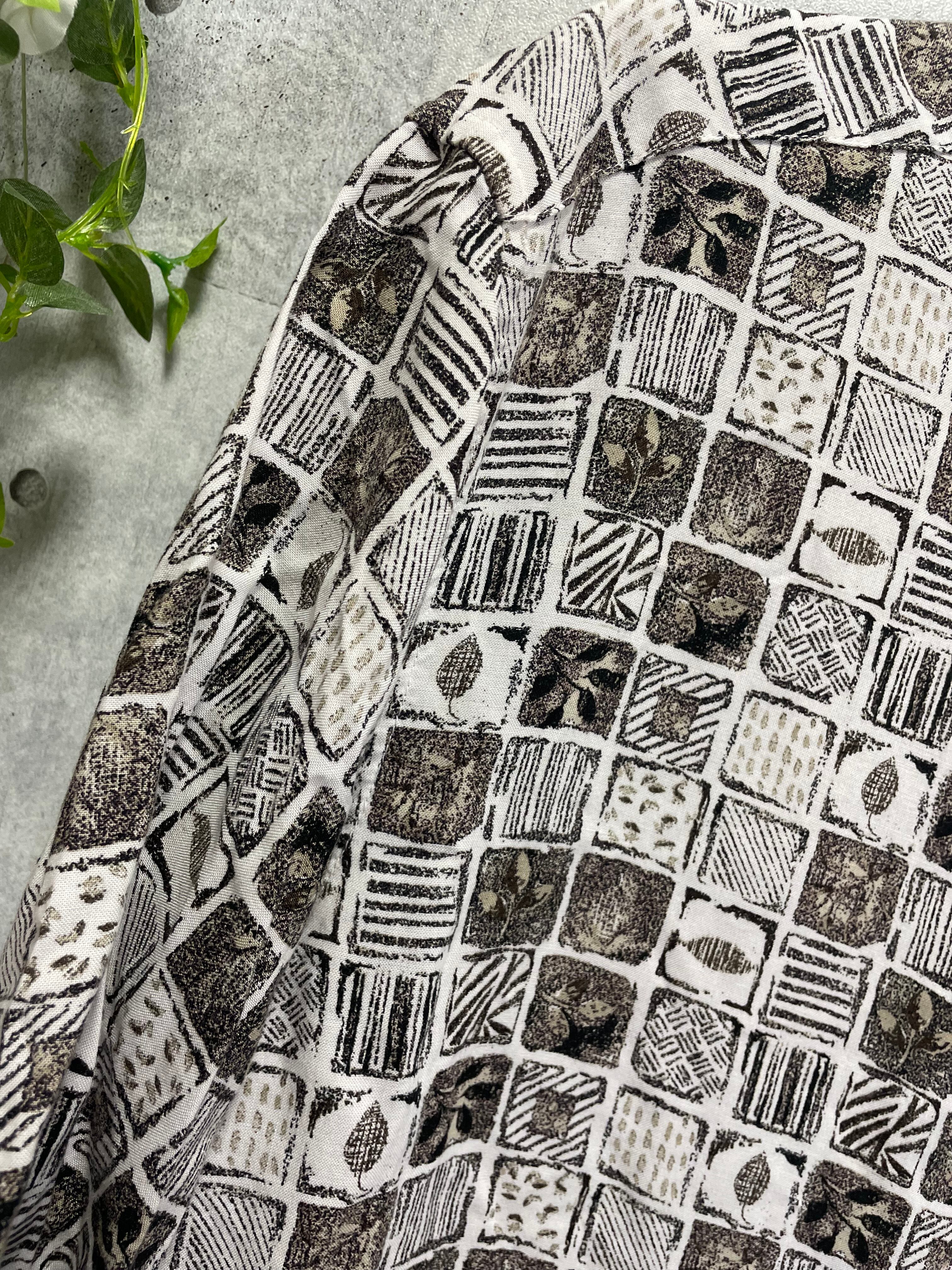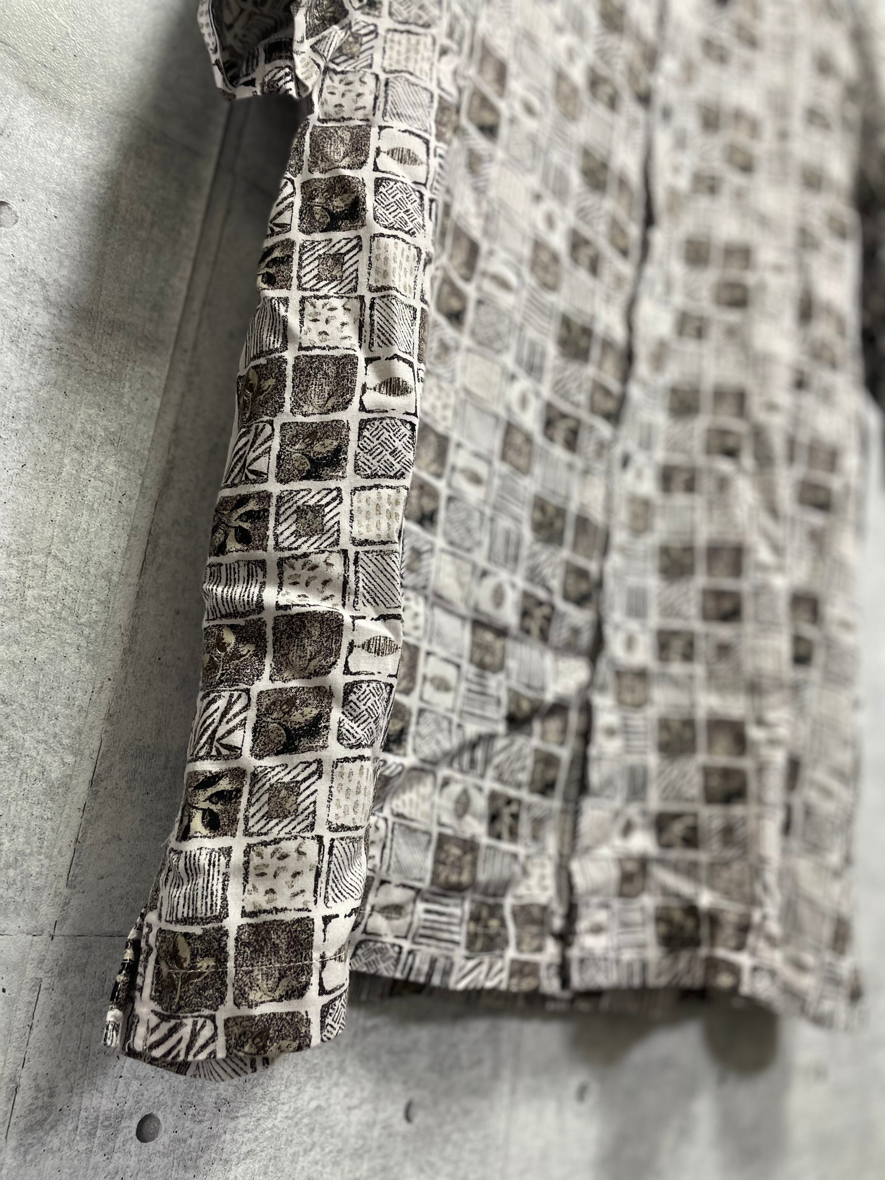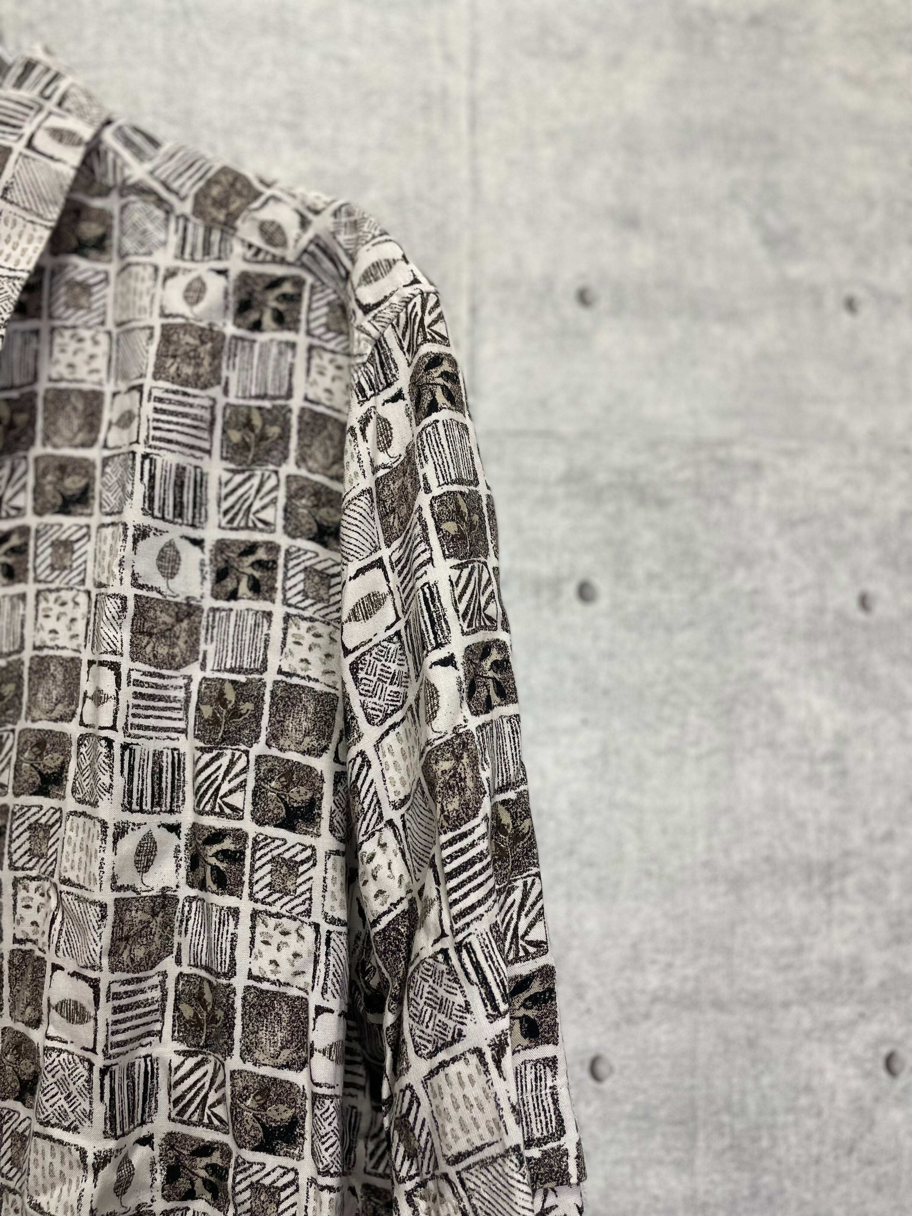 ちょっと洒落てて高めのチョコの詰め合わせみたいな模様の柄シャツ。